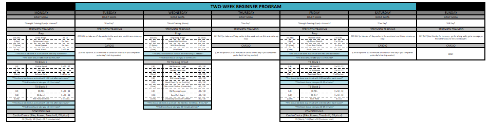 This is a FREE 2-Week Beginner Total Body Training Plan. It alternates strength training and cardio days. Click “Download” to access the file!
