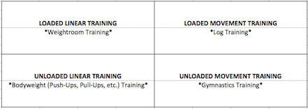 This style of training SHOULD NOT completely replace traditional strength training. Instead, “Loaded Movement Training” can be used as a supplement to a traditional weightroom style approach. You would essentially use the weightroom to build strength and stability, and use The Log for rhythm, coordination, etc. The course mentions a “4Q Training Model”, which would look like the following: